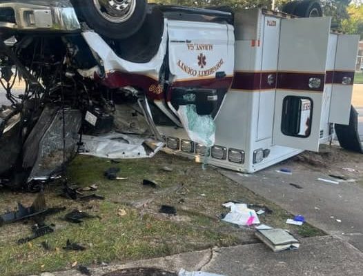 Authorities said the crash happened shortly after 7 a.m. at the intersection of Pine Avenue and Monroe Street, one of the county’s busiest crossings. According to witness reports, the Dougherty County EMS ambulance was traveling through the intersection when the impact from another vehicle caused it to overturn.